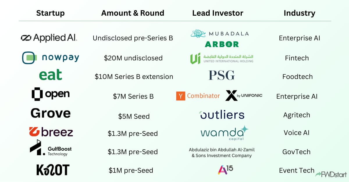We're starting with an announcement that broke yesterday regarding friend of FWDstart Arya Bolurfrushan's Applied AI, announcing a pre-Series B led by Mubadala's MENA Venture Fund and Arbor Ventures. This comes less than 12 months after the company's oversubscribed $55M Series A at a reported $300M valuation. The company was on track for $20M in revenue in 2025, according to MEVP's recently published annual letter. We recently had Arya on the FWDstart podcast, and you can check out that episode here.